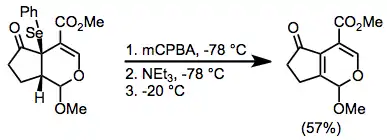 For substrates whose product olefins are sensitive to oxidation, meta-Chloroperoxybenzoic acid (mCPBA) can be employed as an oxidant. It oxidizes selenides below the temperature at which they decompose to alkenes; thus, all oxidant is consumed before elimination begins. Buffering with an amine base is necessary before warming to avoid acid-mediated side reactions.[11]