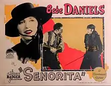 Señorita is a 1927 American silent action comedy film directed by Clarence Badger and starring Bebe Daniels.[1] The film is a parody of The Mark of Zorro (1920), Bebe Daniels was one of the first actresses to play a female Zorro-like character.[2]