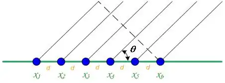 Each sensor is associated with a different delay. The delays are small but not trivial. In frequency domain, they are displayed as phase shift among the signals received by the sensors. The delays are closely related to the incident angle and the geometry of the sensor array. Given the geometry of the array, the delays or phase differences can be used to estimate the incident angle. Eq. (1) is the mathematical basis behind array signal processing. Simply summing the signals received by the sensors and calculating the mean value give the result