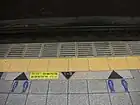 Around one foot from the edge of platform, the floor is marked with a yellow safety line (usually bumped, as described above). Along this line, the locations of each doorway of each carriage are marked with 3 arrows or triangles. The central triangle indicates that disembarking passengers should leave from the center of the door, while the two arrows on the sides indicate that boarding passengers should form two lines at the sides while waiting for the train. Although courtesy requires riders to wait for exiting passengers before entering the train, it is not uncommon for this to be somewhat ignored. Each boarding location is also numbered with the carriage and door number, and passengers use this information to position themselves at the ideal location for transferring to another line, or their desired exit at their destination station.