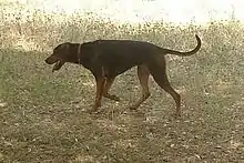 There is a long tradition of hunting in South East Europe and the Serbian Hound is one of several regional hound (and horse) breeds that were bred to suit the hunting requirements of the region.[1] The Serbian Hound is a centuries old breed, it is believed to be a composite of hound breeds that were traded around the Mediterranean, with European and North African dogs contributing to its ancestry.[4] The Serbian Hound is traditionally kept as a pack hound, with its usual quarry being wild boar, deer, fox and hare.[4][5]