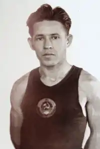 Sergei Konstantinovich Popov (Russian: Сергей Константинович Попов, 21 September 1930 – 25 June 1995) was a Russian marathon runner. He won a gold medal at the 1958 European Championships setting a new world record at 2:15:17; this record stood for more than two years and remained the Soviet national record until 1970. He also set a world record in Moscow, on June 15, 1958, for 30 kilometers, running 1:32:58.8.[3] Popov won the Soviet marathon title in 1957, when he ran the world's fastest marathon of the year in 2:19:50 in Moscow,[4] 1958 and 1959, and placed second in 1962 and third in 1963.[5] In 1959, he set the course record at the Košice Peace Marathon, the third year in a row he ran the world's fastest time.[4] He finished fifth at the 1960 Summer Olympics when the winner, Ethiopia's Abebe Bikila, broke Popov's world record by less than a second.[1]