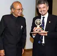 ![]() El Dr. Lais-Suarez recibe un galardón de Oro del Gobierno de la India, entregado por la embajada de ese país en Argentina | |