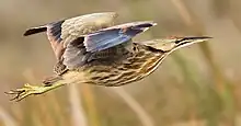 The American bittern, for instance, is noted as a species of concern as they are vulnerable to human-caused disturbances, hence why they are on the Blue List in British Columbia. This location is vital for many migratory bird species at risk like the American Bittern and the Western Sandpiper, due to the biofilm found in the mudflats.[17] Biofilm found in intertidal sediments is a essential food for birds and invertebrates, and due to climate-change is becoming a scarce commodity.[20] Shorebird populations trends are lower when the Fraser River is high, due to variability in biofilm quantity when salinity during the spring freshet is altered.[21]