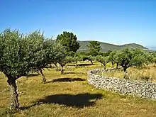 The natural park is part of the Southwest Iberian Mediterranean sclerophyllous and mixed forests and hosts more than 600 different plant species.[12] The vegetation that characterizes the PNSAC is the result of the bioclimatic influences on the territory. There is a great wealth of species with a diversity of sizes and origin (from Atlantic Europe, the Mediterranean, the Iberian Peninsula and North Africa), rare and unique Portuguese species, paleoclimatic species, some even used for medicinal, culinary, aromatic or ornamental purposes.[8] Though floristically rich, the park has suffered dramatic changes over the years. The Alvados Depression is a clear example of this dynamism; at present its landscape is agrarian; however, centuries ago, at the time of its occupation by its first settlers, the area was a marsh that was surrounded by oak groves, pine groves and strawberry trees. Later, with the romanization, it became an olive grove with grafts of wild-olive.[8]