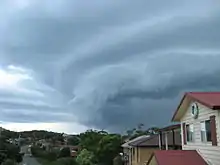 On 16 December a tornadic supercell thunderstorm struck the east coast, with high rainfall, hailstones and unusually strong winds. Kurnell in southern Sydney was particularly hard hit with homes and businesses un-roofed, sewerage and electricity cut, two trucks tipped on their sides, and workers evacuated from Kurnell Refinery and the desalination plant, which was damaged. A "Wind gust of 213 kilometres per hour (132 mph) recorded in Kurnell at 10:33am," was "the fastest wind speed recorded in NSW history".[29] Injuries to people were only minor. Roof damage also occurred at Westfield Bondi Junction and in South Nowra, Thousands of homes lost power in Bulli, Thirroul and Woonona north of Wollongong.[29][30]