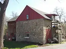 Behind the house sits a rubble stone barn. The structure is typical of barns found in the German communities in Pennsylvania and other eastern states.[4] It features triangular, wood relieving arches and the gable ends covered with vertical wood planks.