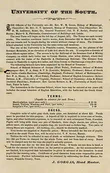 - ↑ "The University of the South". nces.ed.gov. U.S. Dept of Education. Retrieved February 16, 2023.