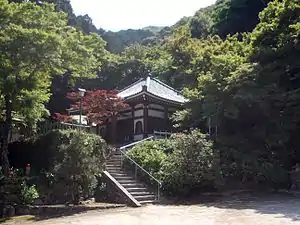 The wooden Avalokiteśvara statue, enshrined in the main hall, has been an object of significant religious reverence. It was designated a Cultural Property of Japan by the government in 1906. On October 4, 2009, a theft of the Buddha statue occurred.[2] The thief entered the temple and stole the statue from the main hall. However, the statue was recovered in December of the same year. Shoe marks left behind indicated that multiple criminals were involved, and it is believed they broke into the main hall by cutting the padlock.[3]