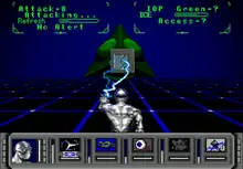 While inside the Matrix, the interface changes. The shadowrunner who entered it is replaced by a persona, the character's reflection in the cyberworld, which navigates the network. Networks are made up of a series of nodes: geometric shapes representing different facets of the system, such as the CPU or data stores. Each node has a different function: the CPU, for example, can cancel system alerts and crash the entire system. The difficulty of defeating a particular node is determined by its color. Each node is (usually) protected by intrusion countermeasures called IC (pronounced "Ice"). These are designed to forcibly dump the persona from the system by various means, sometimes resulting in the decker taking physical damage in the real world, to the point of being incapacitated. IC appear as different figures covering the nodes and have different effects depending on their type. Matrix runs consist of stealing or erasing data, or crashing a system via the CPU. During corporate infiltrations, the player can use internal cyberterminals to shut off the building's security, making the run easier. In addition to its role in shadowruns, the Matrix can be used as a direct source of income by pilfering data from systems and selling it. Files sell for a semi-random price based on the system of origin and difficulty rating of the node the data was stolen from; a single file can sell for as much as 12,000 nuyen, or turn out to be completely worthless.