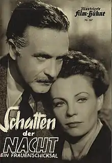 Shadows in the Night (German: Schatten in der Nacht) is a 1950 West German drama film directed by Eugen York and starring Hilde Krahl, Willy Fritsch and Carl Raddatz.[1] It was made at the Wandsbek Studios by the Hamburg-based Real Film. The film's sets were designed by the art director Herbert Kirchhoff.