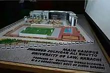 The Shaheed Zulfiqar Ali Bhutto University of Law (SZABUL) (Sindhi: شهيد ذولفقار علي ڀٽو يونيورسٽي آف لا) is a Public University situated in Karachi, Sindh, Pakistan.[5] SZABUL has unique privilege to be the first ever Law University in Pakistan.[6] It is recognized by the Higher Education Commission (Pakistan) and[3][7] Pakistan Bar Council. It offers B.A LL.B. (5 years), BS Criminology (4 years), Bachelors of Business Administration (BBA 4 years, 2 years), LL.M and PHD programs. Justice (R) Qazi Khalid Ali was the founding vice chancellor appointed in 2013.[8] Mr. Justice (R) Rana Muhammad Shamim is the current vice chancellor of the university appointed by the chief minister for a four-year term in September 2019.