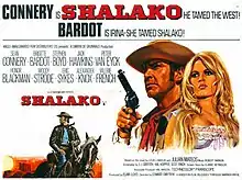 Shalako is a 1968 Western film directed by Edward Dmytryk and starring Sean Connery and Brigitte Bardot. It was shot at Shepperton Studios near London with sets designed by the art director Herbert Smith. Location shooting took place in Almería in southern Spain, particularly in the Tabernas Desert which was frequently used in European westerns during the decade.