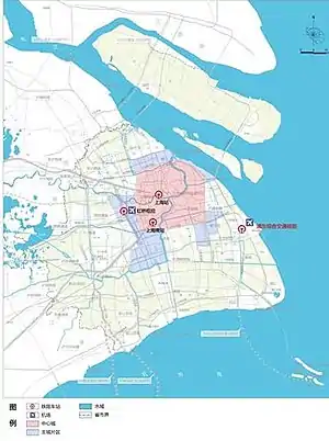 Shanghai East railway station (simplified Chinese: 上海东站; traditional Chinese: 上海東站; pinyin: Shànghǎi Dōngzhàn) is a planned new station in the Pudong New Area of Shanghai. It will be located beside Shanghai Pudong International Airport, forming a future major intermodal passenger transport hub.[1] Shanghai East Railway Station is expected to be completed and put into operation within 2024.