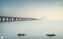 The bridge and tunnel were built from 2005 to 2009 at a cost of 12.6 billion yuan (US$1.84 billion),[1] and opened on 31 October 2009.[1][2] Their combined length is 25.5 km (15.8 mi), forming part of the G40 Shanghai–Xi'an Expressway.