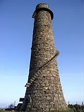 Site of a lead ore smelter, a mile-long stone flue and a granite chimney on Carrickgollogan hill, which is visible from much of southeast Dublin.[2]