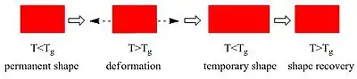 Polymer that, after heating and being subjected to a plastic deformation, resumes its original shape when heated above its glass-transition or melting temperature[2]