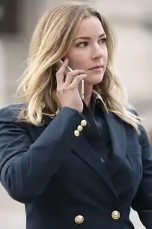 VanCamp's role as Sharon Carter has received praise with TheThings writer noting that she had "great presence in the MCU" before being seemingly disappearing from the franchise.[33] Carter's reveal as the Power Broker received generally mixed reviews with many praising VanCamp's acting transition from Carter into the Power Broker but some calling it "predictable and unsatisfying".[32][34] Rolling Stone writer praised VanCamp's acting ability noting that she "does well with the bigger showcase and with playing a much more cynical Sharon than the one who flirted with Steve in the movies".[35] Deadline writer Anthony D'Alessandro also praised VanCamp's acting but noted that the reveal did not make much sense; however, he received the cliffhanger post-credits scene with praise, calling it "intriguing".[36] Comic Book Resources writer Timothy Donohoo wrote that Carter's transition into the "villainous Power Broker" was "poorly done".[37] He felt that the "development came out of nowhere" and that "audiences didn't receive a true reason for her motives".[37] Conversely, Mediaversity writer Li felt that Carter was "reborn" on the show "as a character with grit and independence".[38]