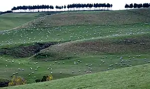 The sheep population reached a peak of 70 million in 1982 but soon there was a sharp decline as the dairy industry overshadowed it. In 1987, the sheep population was only about 39 million; this fall is also attributed to withdrawal of government subsidy to this sector.[3] In spite of a decline in the population of sheep in New Zealand, the hilly areas of the country have seen a proliferation of sheep farming in the decades since the late 1960s. This growth is on account of introduction of better species of pasture vegetation, use of pesticides and weed control, regulated and systematic paddock management of farms, and introduction of better and disease resistant breeds of sheep.[2] Under a wide mosaic of varying climatic and soil conditions, and the large extent of farms have resulted in development of a wide range of industries.[14]