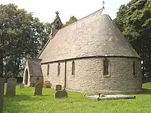 The parish church is dedicated to Saint Michael and All Angels. Some sources give the dedication as just "All Angels" and many sources refer to the church as just a chapel. The present church, which seats 140, was built in 1864 near the site of the old chapel. The burial ground is to the east.