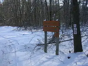 The land has a diverse selection of tree species, and contains more than six natural communities, including the rich mesic forest, hemlock-pine ravine forest, black beech forest, red birch forest, oak forest, and a stand of butternut trees.[1] In addition to the trees, there is an abundance of mountain laurel, several streams, and interior forest breeding birds.[3]