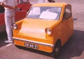 It was conceived, designed and built by Dutch engineering student Arnold van der Goot starting in 1954. Van der Goot's interest in transportation developed during his postwar employment by Bristol Aeroplane Company. He hit upon the idea of a small, light and readily available "pool car" specifically for intracity transportation when faced with a university project. Such a car could conceivably be rented almost anywhere in the city, driven within the city limits and dropped off at any of the rental stations. The government of the Netherlands took an interest in van der Goot's project and helped with financial backing since, even at that time, traffic congestion on the narrow, cobblestoned streets of Amsterdam was a problem.