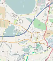 This neighbourhood is smaller than the adjoining village, separated by the M3 motorway and some adjoining meadows and fields. The second of the borough's Green Belt SSSIs, Sheep Walk Meadows, is a key feature of Shepperton Green, bounding it, to its south. A Saxon and medieval burial ground gives its name to the Saxon Junior School who use it for playing fields and has Scheduled status.[45] A farm combined with a significant amount of fishing and gravel lakes form the outskirts and within the clustered settlement an estate of the homes was built as non-serving personally barracks for the British Army.[46]