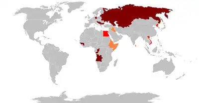 Former users of the Shershen in dark red, current in light. Orange nations used the Mol version
