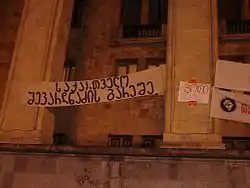 Banners on Parliament of Georgia saying: "Georgia without Shevardnadze", "Poti is with you"