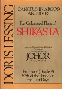 Re: Colonised Planet 5, Shikasta (often shortened to Shikasta) is a 1979 science fiction novel by Doris Lessing, and is the first book in her five-book Canopus in Argos series. It was first published in the United States in December 1980 by Alfred A. Knopf, and in the United Kingdom in November 1979 by Jonathan Cape. Shikasta is also the name of the fictional planet featured in the novel.