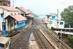 Shimla railway station is a small railway station in Shimla in the Indian state of Himachal Pradesh. The station is the terminus of the UNESCO World Heritage Site Kalka–Shimla Railway. Shimla railway station is located at an altitude of 2,075 metres (6,808 ft) above mean sea level.[1] It was allotted the railway code of SML under the jurisdiction of Ambala railway division. The 762 mm (2 ft 6 in)-wide narrow-gauge Kalka-Shimla Railway was constructed by Delhi–Ambala–Kalka Railway Company and opened for traffic in 1903.[2]