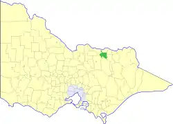 Wangaratta was first incorporated as the North Ovens Road District on 10 June 1863, which became a shire on 17 September 1867. Part of the Mokoan Riding of the Shire of Benalla was annexed as the Killawarra Riding on 31 May 1906. The shire was renamed Wangaratta on 22 November 1916.[2]