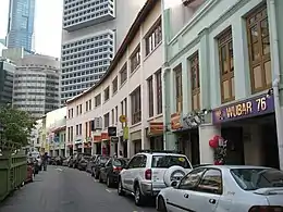 A shophouse is a building type serving both as a residence and a commercial business.[1] It is defined in dictionary as a building type found in Southeast Asia that is "a shop opening on to the pavement and also used as the owner's residence",[2] and became a commonly used term since the 1950s.[3] Variations of the shophouse may also be found in other parts of the world; in Southern China, Hong Kong, and Macau, it is found in a building type known as Tong lau, and in towns and cities in Sri Lanka.[4] They stand in a terraced house configuration, often fronted with arcades or colonnades, which present a unique townscape in Southeast Asia, Sri Lanka,[4] and South China.