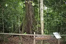The tallest specimen, named "Menara", was measured in 2019.[3][4][5] The tree's height was measured from the top of the crown to the lowest part of the buttress,[2] giving an averaged measurement of 97.58 m.[6]