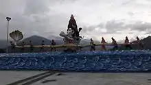 The temple will house 51 forms of Lord Ganesha, a first in the North East Region. While a lot of the construction material was imported from Thailand, expert artisans were brought in from Nepal and West Bengal for the construction. The main altar has a 12-foot tall statue of Lord Ganesha with 16 hands.and very nice and beautiful statue of Samudra Mathan which is one of the best known episodes in Hindu mythology. The story appears in the Bhagavata Purana, the Mahabharata and the Vishnu Purana, and explains the origin of amrita, the drink of immortality.
