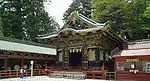| Kariden Honden, Ainoma, Haiden | Honden: Building enshrining the deified image of Tokugawa Ieyasu, Tōshō Daigongen in case of repair works on the main Honden. Ainoma: Building connecting the Honden and Haiden. Haiden: Worship hall. |