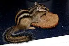 The Siberian chipmunk (Eutamias sibiricus), also called common chipmunk, is native to northern Asia from central Russia to China, Korea, and Hokkaidō in northern Japan.[1] It was imported from South Korea and introduced in Europe as a pet in the 1960s.