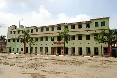 There is a rectangular playground at the centre of the school. North and west side of the playground is adjacent to two three-storied buildings lying perpendicular to each other. One is the main building, constructed in 1952 and the other building was built in the 1990s. At the south end of the ground there is a school auditorium named ‘Surendra Mancha’, which was built in 1981. There is also a primary section of this school named Bharadwaj Shikshasram (Bengali: ভরদ্বাজ শিক্ষাশ্রম).