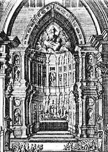 Little by little Renaissance classical elements were absorbed into Sicilian architecture, mainly coalescing episodically as in Syracuse Cathedral's sacristy or in small buildings such as the chapels added to churches.[10] Those chapels included the Naselli chapel at San Francesco in Comiso, the Confrati chapel at Santa Maria di Betlem in Modica, the 'Dormito Virginis' chapel at Santa Maria delle Scale in Ragusa, the Marinai chapel at Annunziata church in Trapani (designed by Gabriele di Battista[11]).