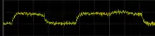 An attempt to decode RSA key bits using power analysis. The left peak represents the CPU power variations during the step of the algorithm without multiplication, the right (broader) peak – step with multiplication, allowing an attacker to read bits 0, 1.