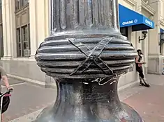 By the 2020s, the clock had again fallen into disrepair; its head was dented and a panel in its pedestal had to be sealed using duct tape. Local activist Thomas Crater contacted politicians and city government agencies about issues with the clock. After nobody claimed ownership of the clock, the Jamaica Center Business Improvement District decided to restore it, receiving $30,000 in funding from the office of New York City councilman Daneek Miller and another $30,000 from the city government. Save America's Clocks and the Electric Time Company found that the clock closely resembled a Self-Winding Company design and decided to restore it.[3] In 2021, the Electric Time Company restored the clock at its studio in Massachusetts.[3][7] The clock was rededicated in December 2021.[7][8]