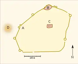 It was the third siege of the town during that war: between April and mid-May 1341, Rennes was besieged by Jean of Montfort, who finally managed to capture it. The city was repaired the following year by Blesist troops after several days of siege.[1] Between the two events, Rennes had kept itself apart from the conflicts, until after the battle of Poitiers, when Henry of Grosmont, duke of Lancaster, came to besiege Rennes in October 1356, hoping thus to precipitate the end of the War of Succession.[2]
