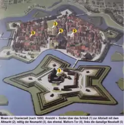 Rheinberg, because it had been besieged many times throughout the war, became known as the whore of war.[10] The place was next besieged in 1606 by Ambrogio Spinola in his campaign and was captured. Rheinberg remained in Spanish hands until 1632 when Frederick Henry retook the city which remained in Dutch hands.[13]
