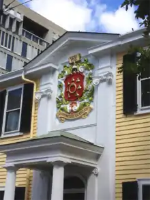The Signet's baroque cartouche contrasts with its neo-Federal façade.