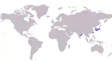 The small-scale whiting occupies a fairly restricted range in the northwest Pacific Ocean consisting of southern Japan, Taiwan, Korea[6] and India.[7] In Japan the species is known from the southern half of the island chain below Tokyo in the west and Yokohama in the east. The species is rare in both Korea and India, with only a single reported capture of the species in these countries. The species inhabits waters from 0 to 30 m in depth, often found on well developed tidal flats in the estuaries of large rivers.[5] The larvae and juveniles of the species commonly inhabit these environments also, with juveniles often inhabiting the shallowest parts of the tidal flats.[8]