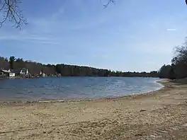 The lake is located on NH Route 122, north of the Hollis traffic light. The lake at its deepest is 24 feet (7.3 m) deep,[1] and there is a deep channel running down the middle of the lake that ranges from 16 to 28 feet (4.9 to 8.5 m) at the deepest. Fish species include largemouth bass, yellow perch, sunfish, pickerel, hornpout/catfish, and a few very large common carp. The lake's depth and continual supply of cold, clean water from below can support both rainbow and brown trout.
