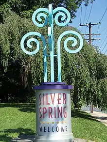 ![]() Clockwise from top: AFI Silver, Veteran's Plaza and the civic building, Downtown Silver Spring from the Metro station, Acorn Park, Baltimore and Ohio Railroad Station | |