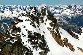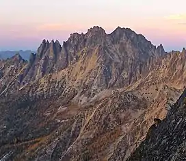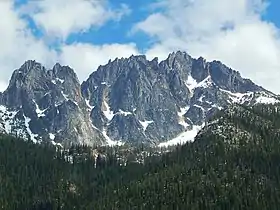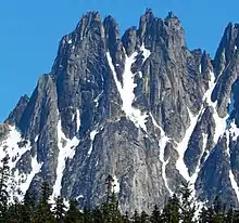 Silver Star Mountain is an 8,876-foot (2,705-metre) mountain located in Okanogan County, Washington. The mountain is part of the Methow Mountains, a subset of the Cascade Range. Silver Star is the dominant feature in the Washington Pass area and visible from the North Cascades Highway. It was first climbed by Lage Wernstedt in 1926.[2]
