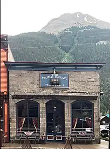 Silverton was founded by mining entrepreneurs William Kearnes, Dempsey Reese, and Thomas Blair in 1874.[10] The region boomed after George Howard and R. J. McNutt discovered the Sunnyside silver vein along Hurricane Peak. Gold was then discovered in 1882, which helped the region weather the Panic of 1893 far better than other mining communities, such as Aspen or Creede.[16][10] The Sunnyside Mine would become one of Colorado's longest running and most productive mines.[9] The mine was shut down after the 1929 stock market crash, but was acquired by Standard Metals Corp. in 1959, and reopened, finding gold in 1973 with the Little Mary vein. The region's economy was dealt a devastating blow in 1992 when the mine and the corresponding Shenandoah-Dives mill, the last operating in the region, permanently closed.[17][9] The closure meant the end of jobs for over one third of Silverton's workforce.[17]