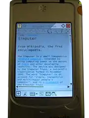 The Simputer was a self-contained, open hardware Linux-based handheld computer, first released in 2002. Developed in, and primarily distributed within India, the product was envisioned as a low-cost alternative to personal computers. With initial goals of selling 50,000 simputers, the project had sold only about 4,000 units by 2005, and has been called a failure by news sources.[1][2]